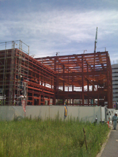 少し前に撮った写真なので鉄骨フレームが見えてます。